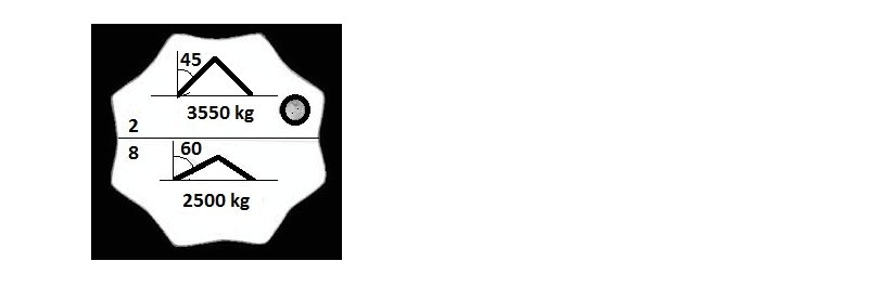 924. W oparciu o przedstawiony rysunek określ maksymalną masę ładunku jaką można podnieść przy pomocy zawiesia 4 cięgnowego: