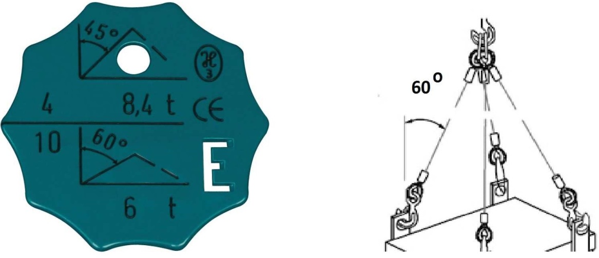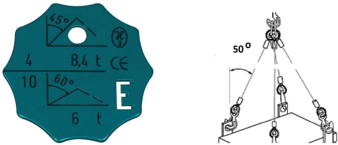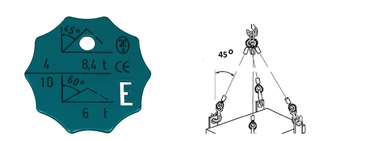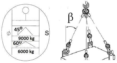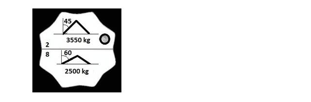 - dopuszczalne obciążenie robocze pozostaje bez zmian, ponieważ kąt wpływa tylko na udźwig dźwignicy