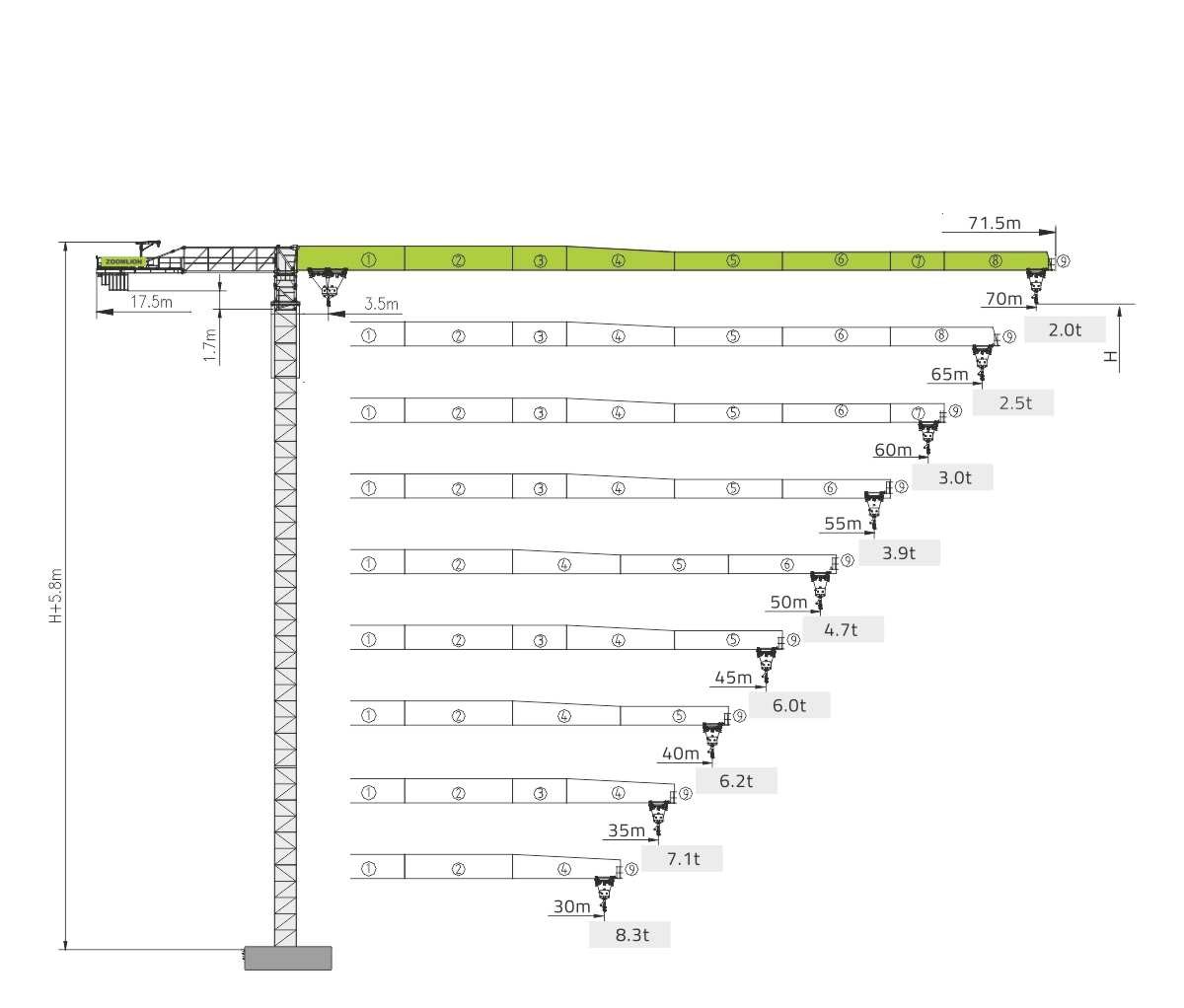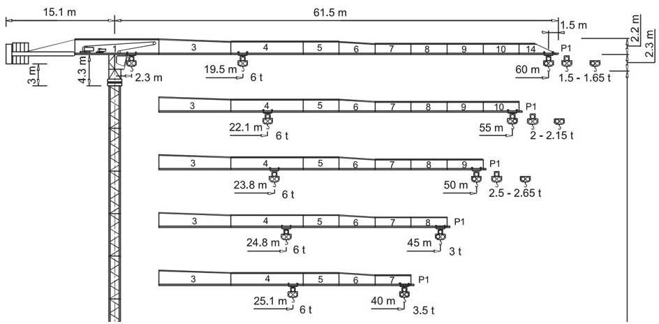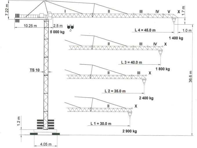 - nie wolno zmieniać długości wysięgnika raz zmontowanego żurawia