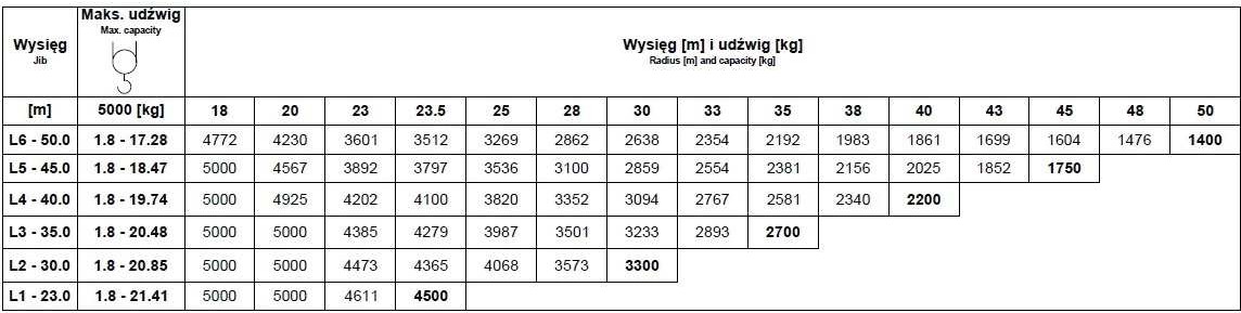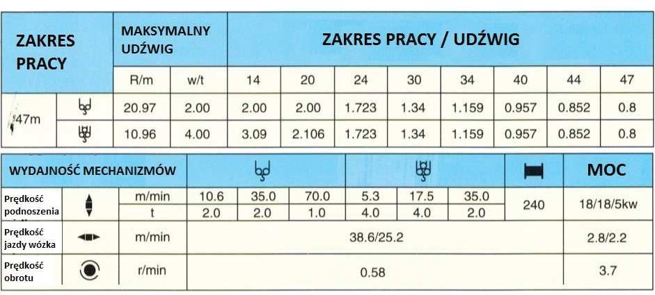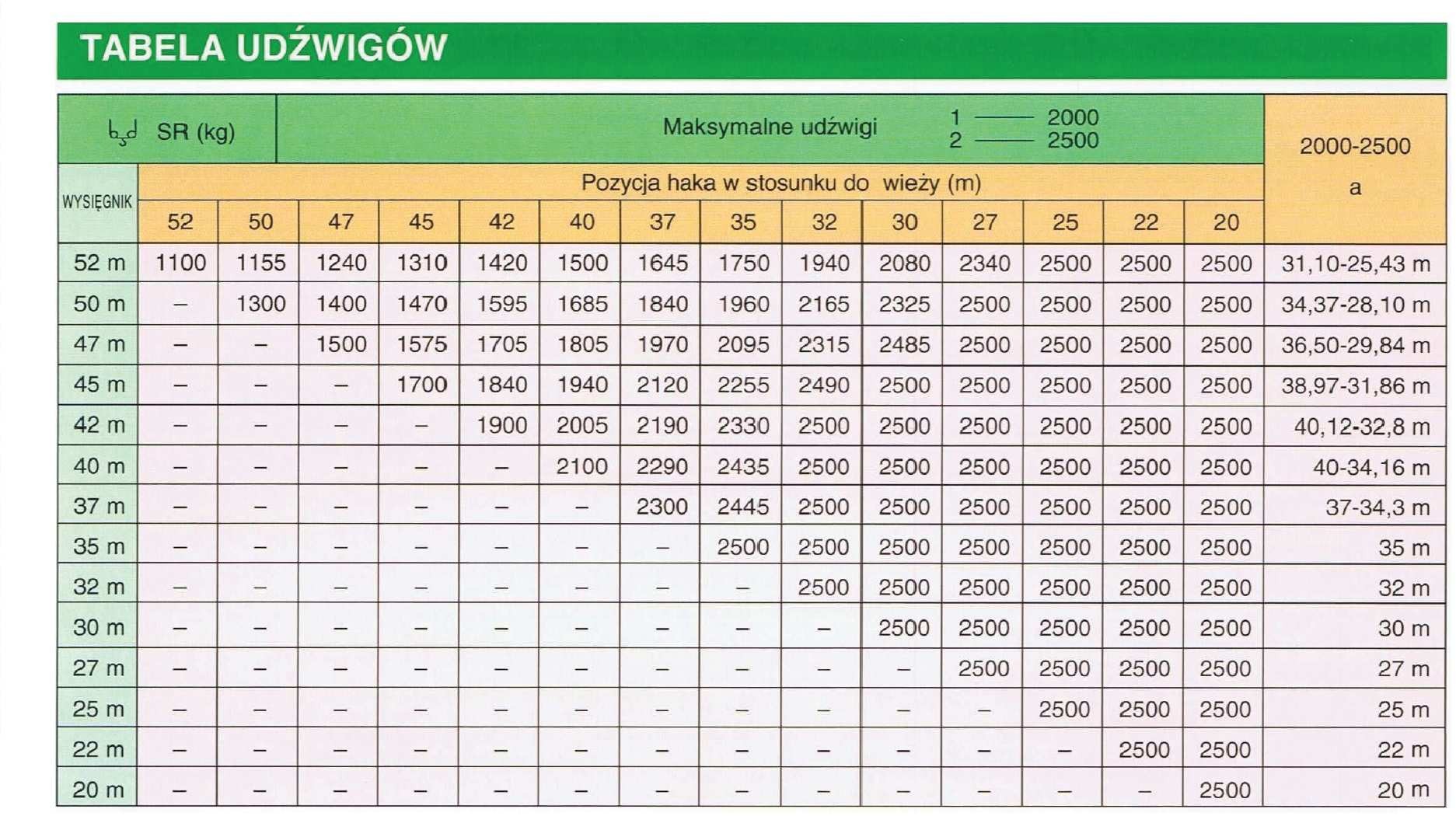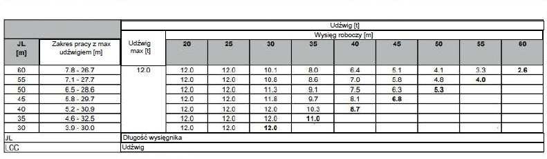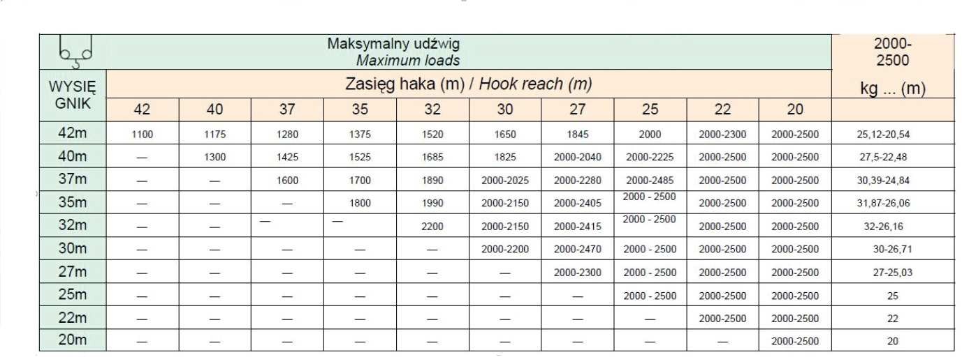 - żurawia wieżowego - tak, żurawia szybkomontującego - tak