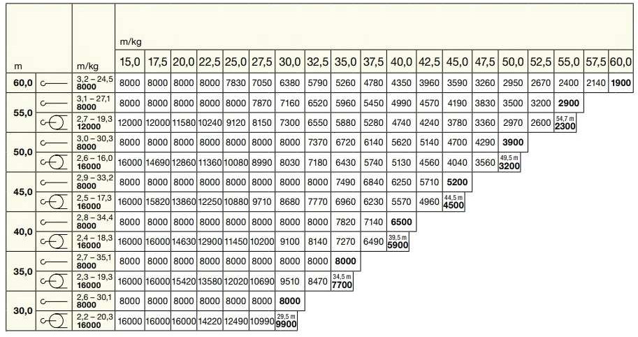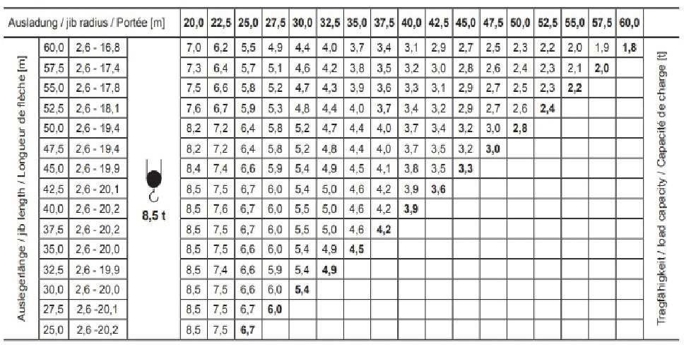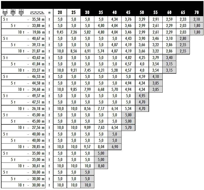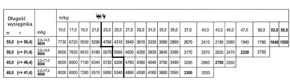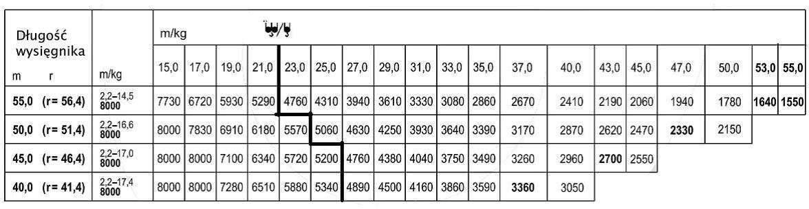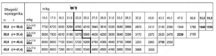 - 2/5 udźwigu żurawia przy planowanych warunkach pracy